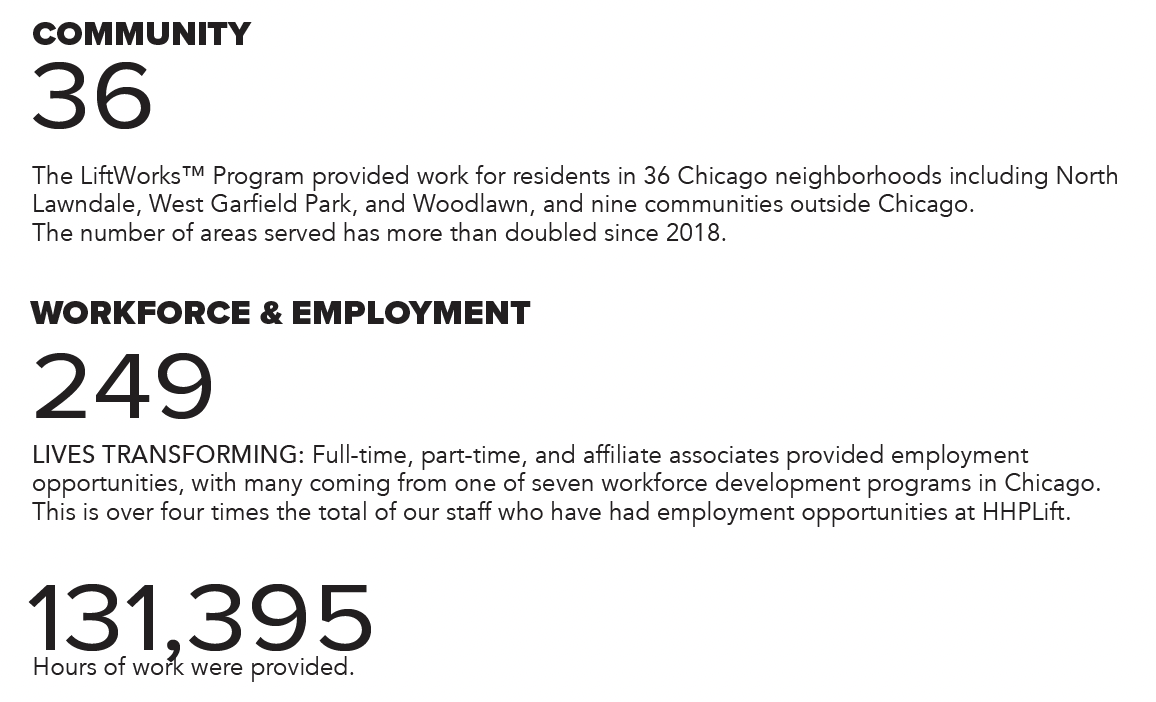 Every gift, every donation, every purchase from HHPLift helps create quality jobs for people who need them most.